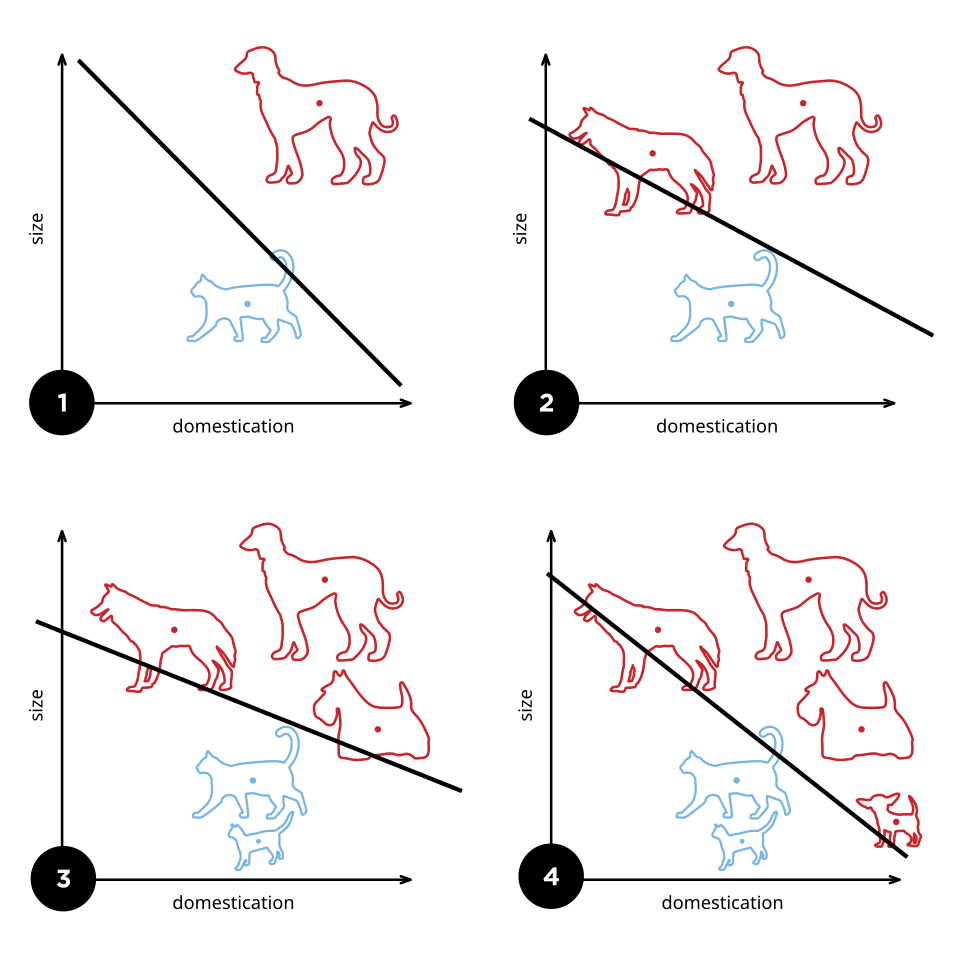 - Each update rotates/ translates the decision boundary